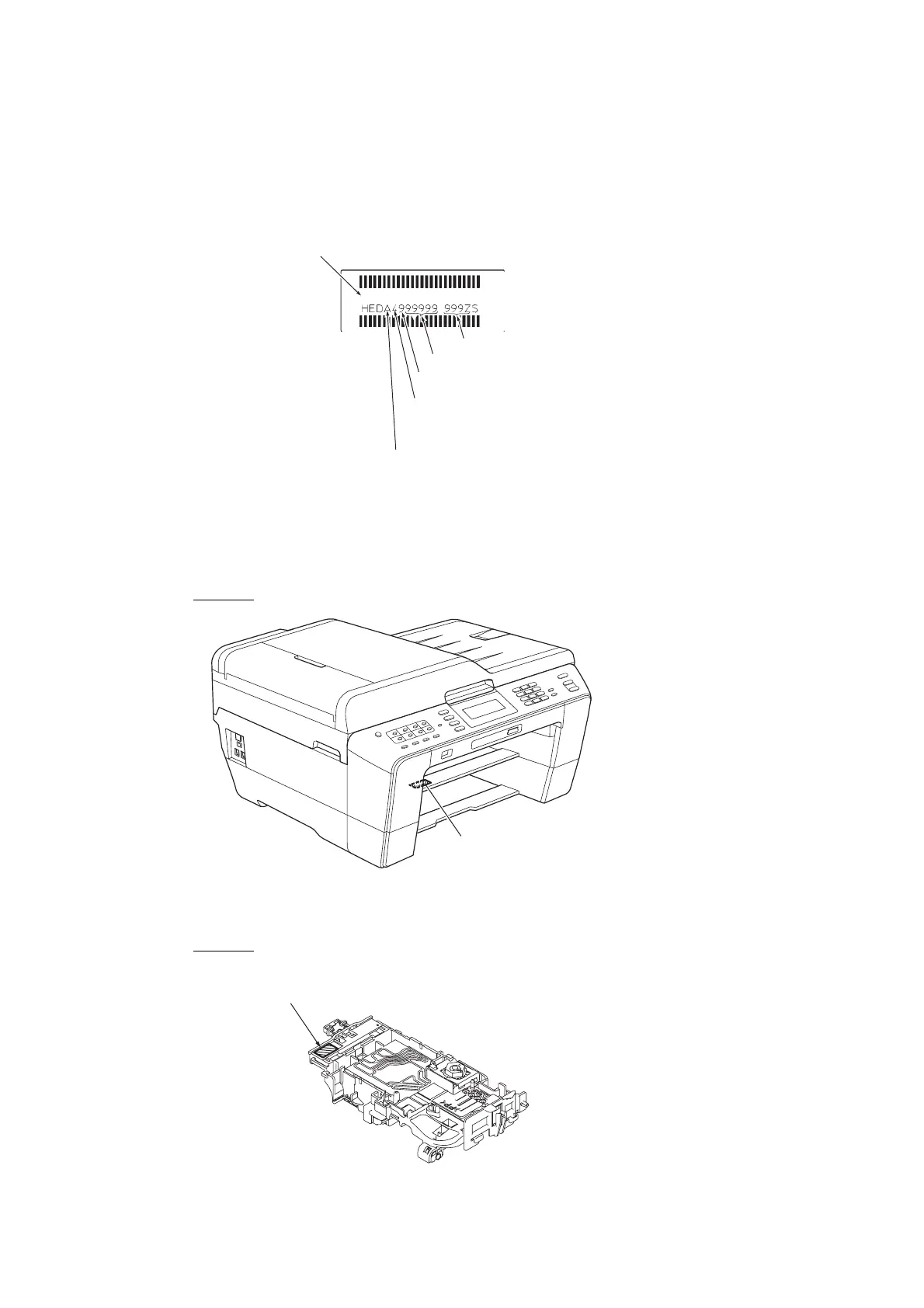 label and QR code label, each of which is attached to the lower cover and the head/carriage