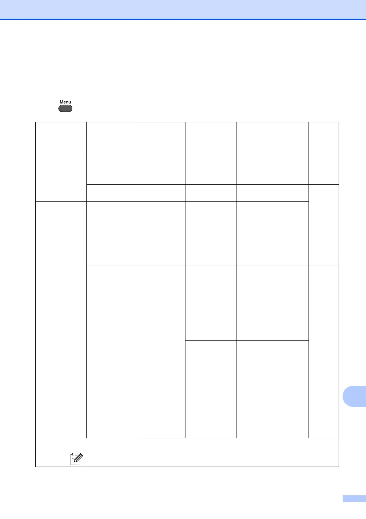 machine's programs. The factory settings are shown in Bold with an asterisk.