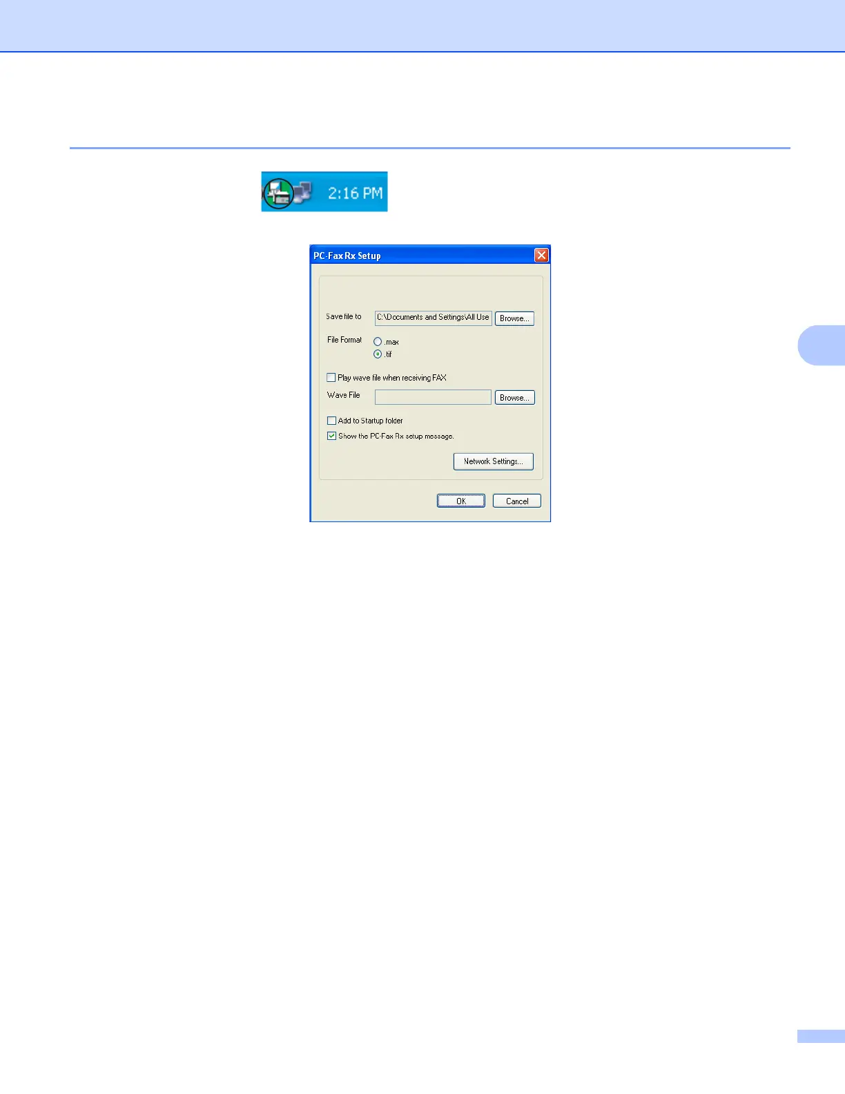 a Right-click the PC-FAX icon on your PC tasktray, and then click PC-Fax Rx Setup.