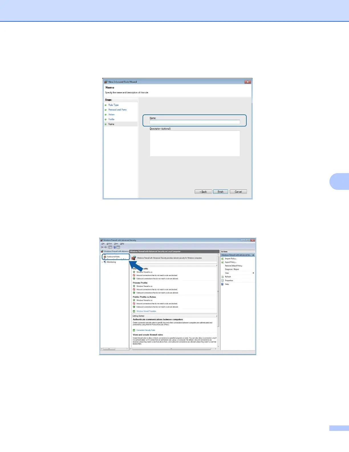 i Enter any description in Name: (for example “Brother Scanner” or “Brother PC-Fax”) and click Finish.