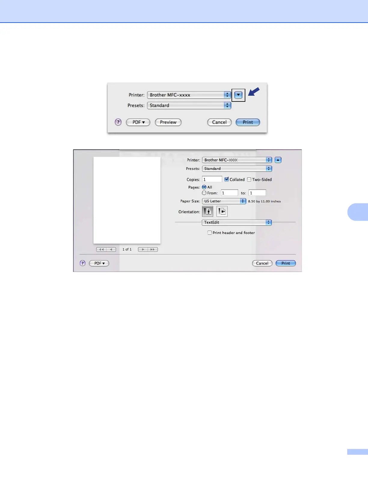 For more page setup options, click the disclosure triangle beside the Printer drop-down list.