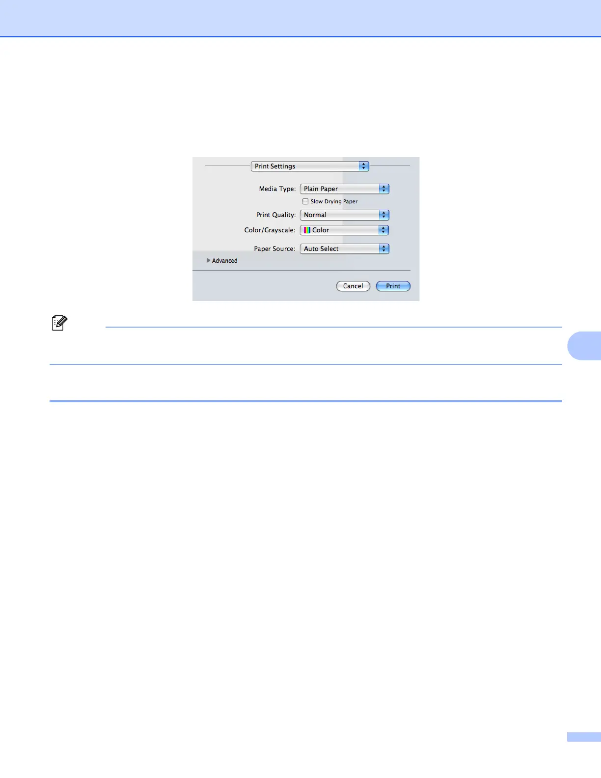 You can choose the Media Type, Slow Drying Paper, Print Quality, Color/Grayscale and Paper Source