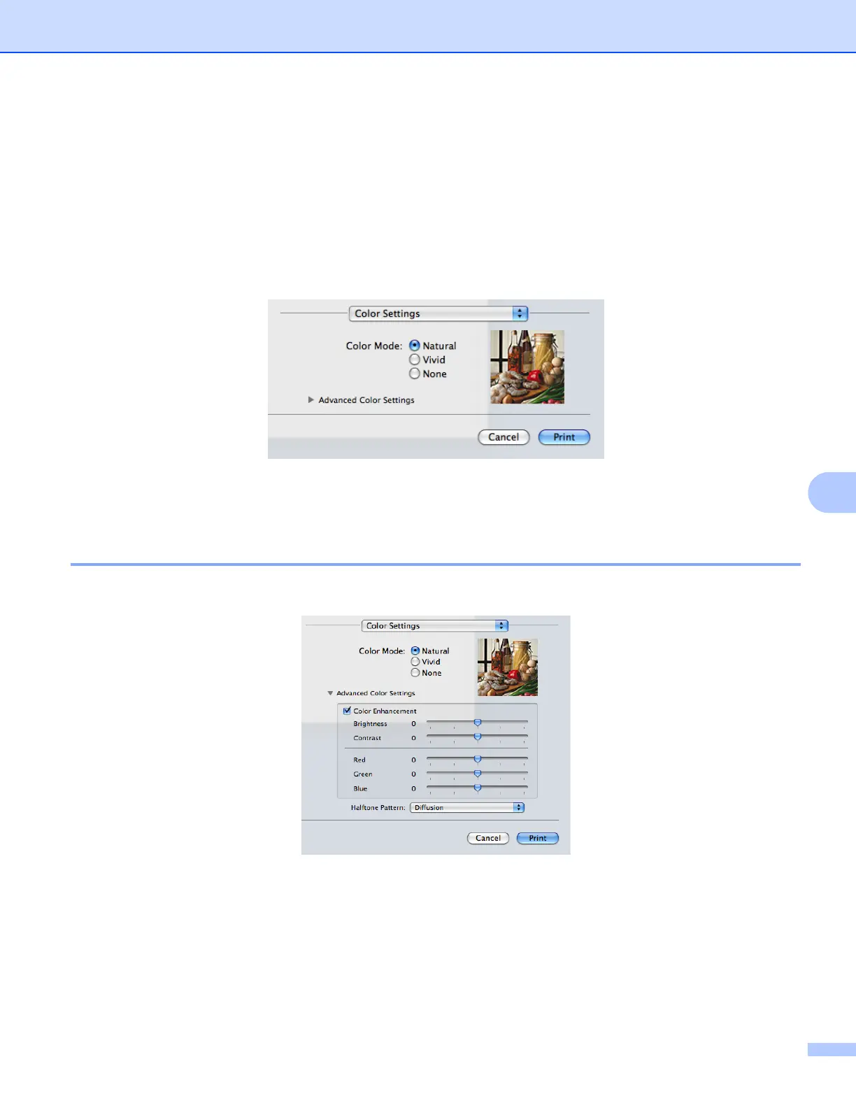 Click Advanced Color Settings to configure Color Enhancement and Halftone Pattern settings.