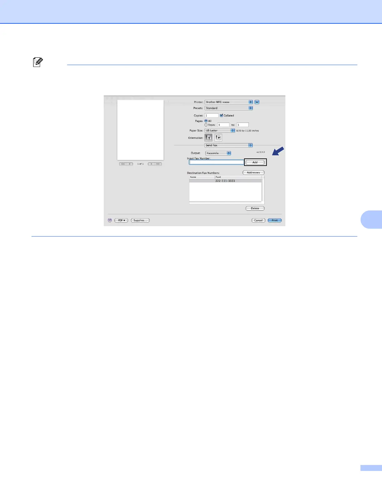 If you want to send a fax to more than one number, click Add after entering the first fax number. The