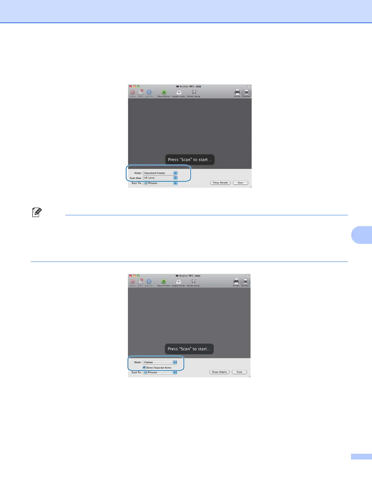 If you place the document on the scanner glass, select “Flatbed” for Mode.