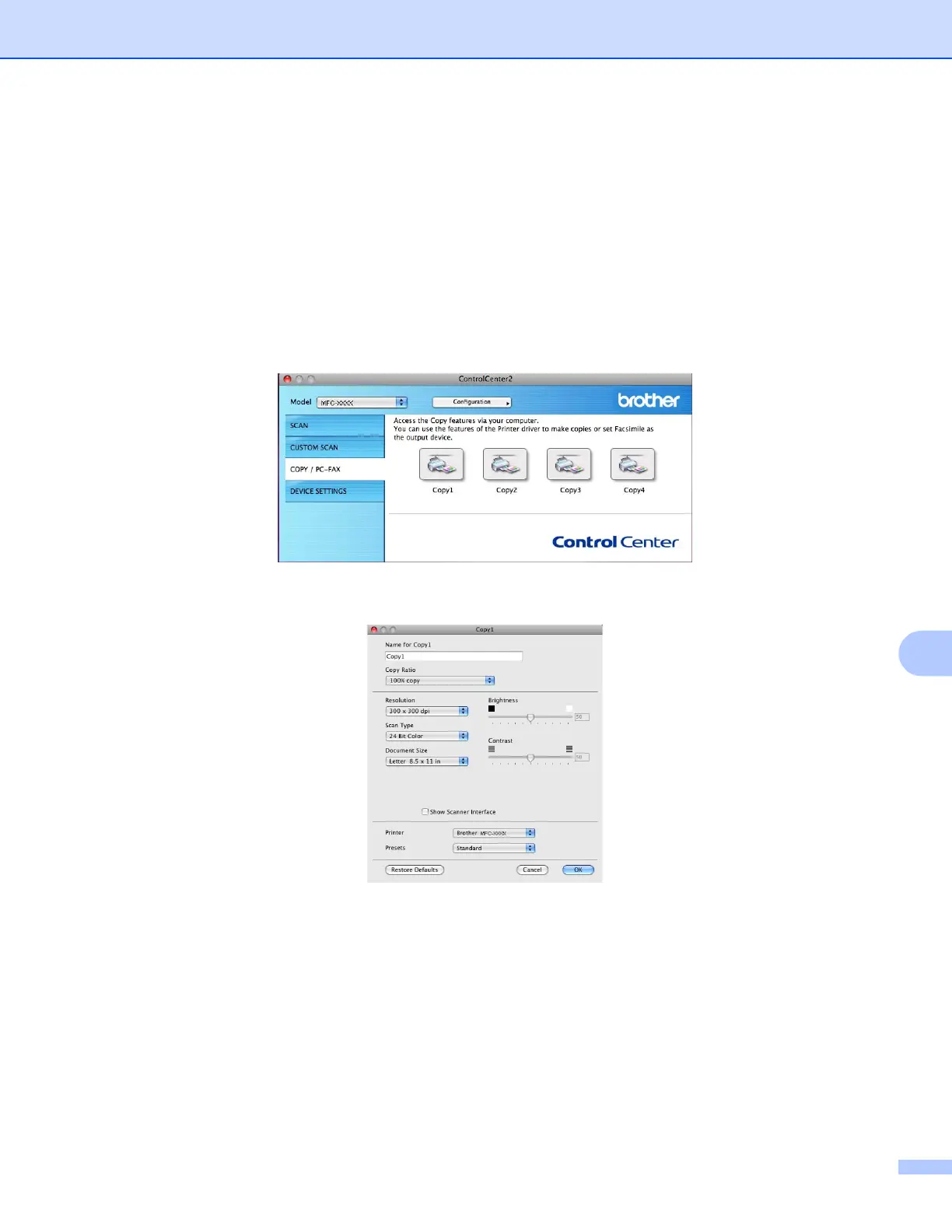 COPY - Lets you use your Macintosh and any printer driver for enhanced copy operations. You can scan a