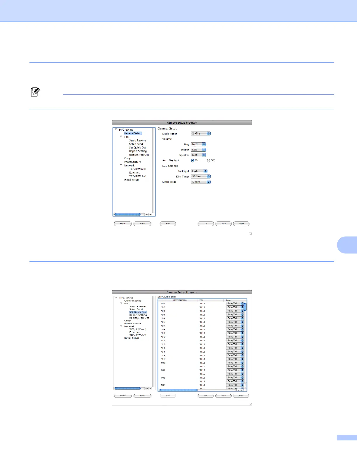 The Remote Setup button lets you open the Remote Setup Program window to configure the machine