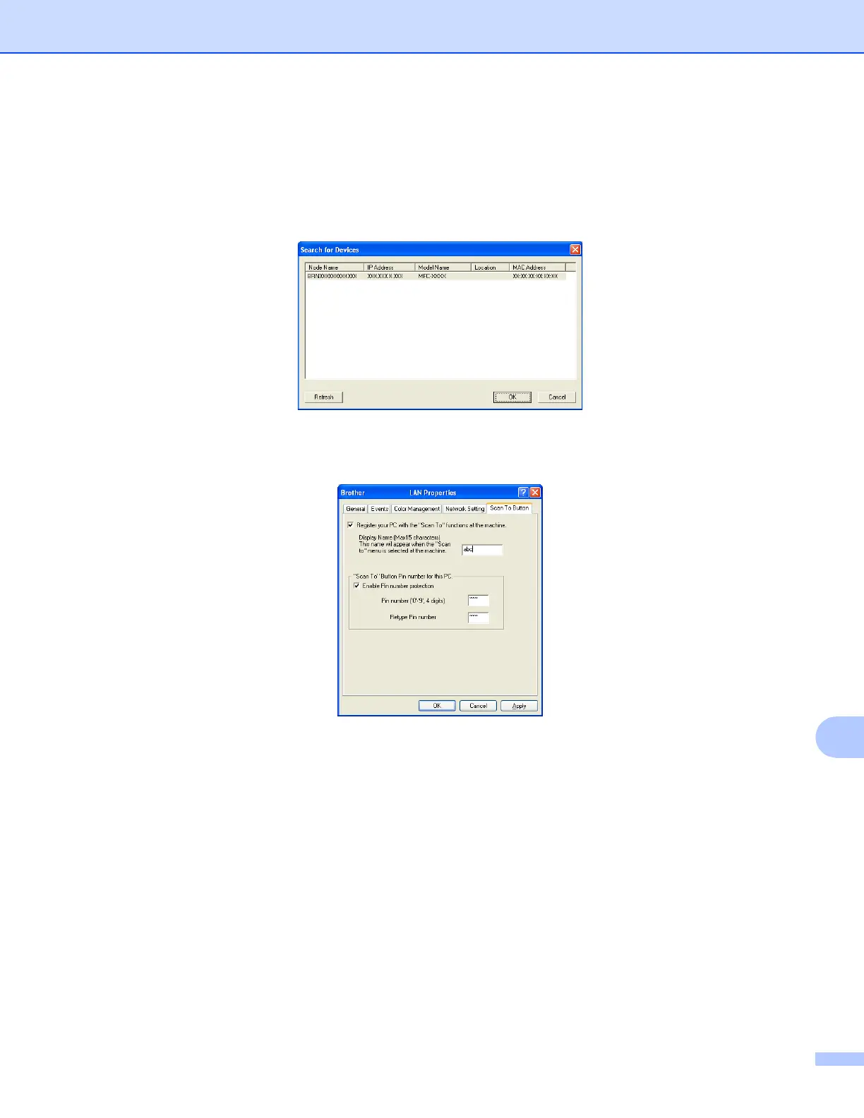 d Click the Scan To Button tab and enter your PC name in the Display Name field. The machine’s LCD