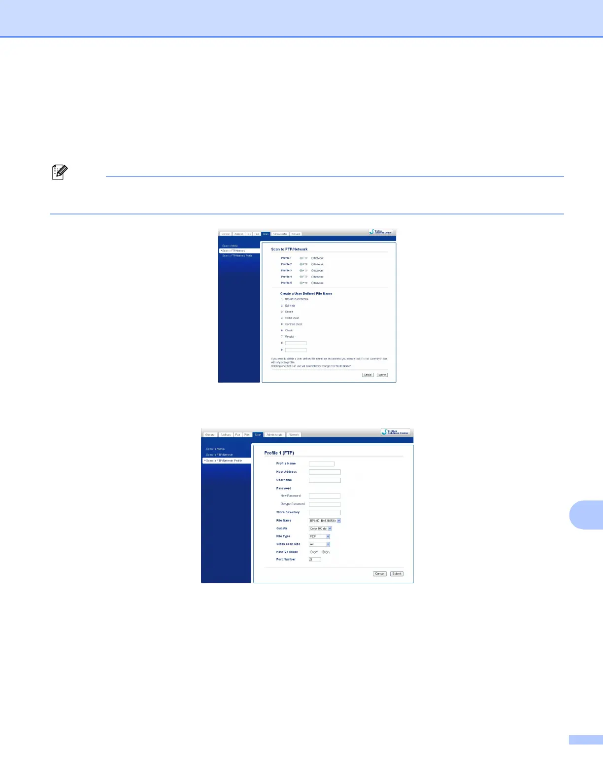b Choose the Profile you want to configure in Scan to FTP/Network Profile.