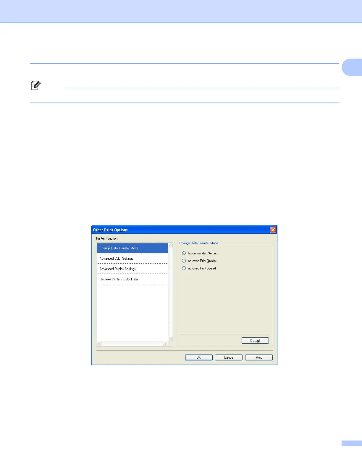 The Change Data Transfer Mode feature lets you choose a print data transfer mode to improve print quality