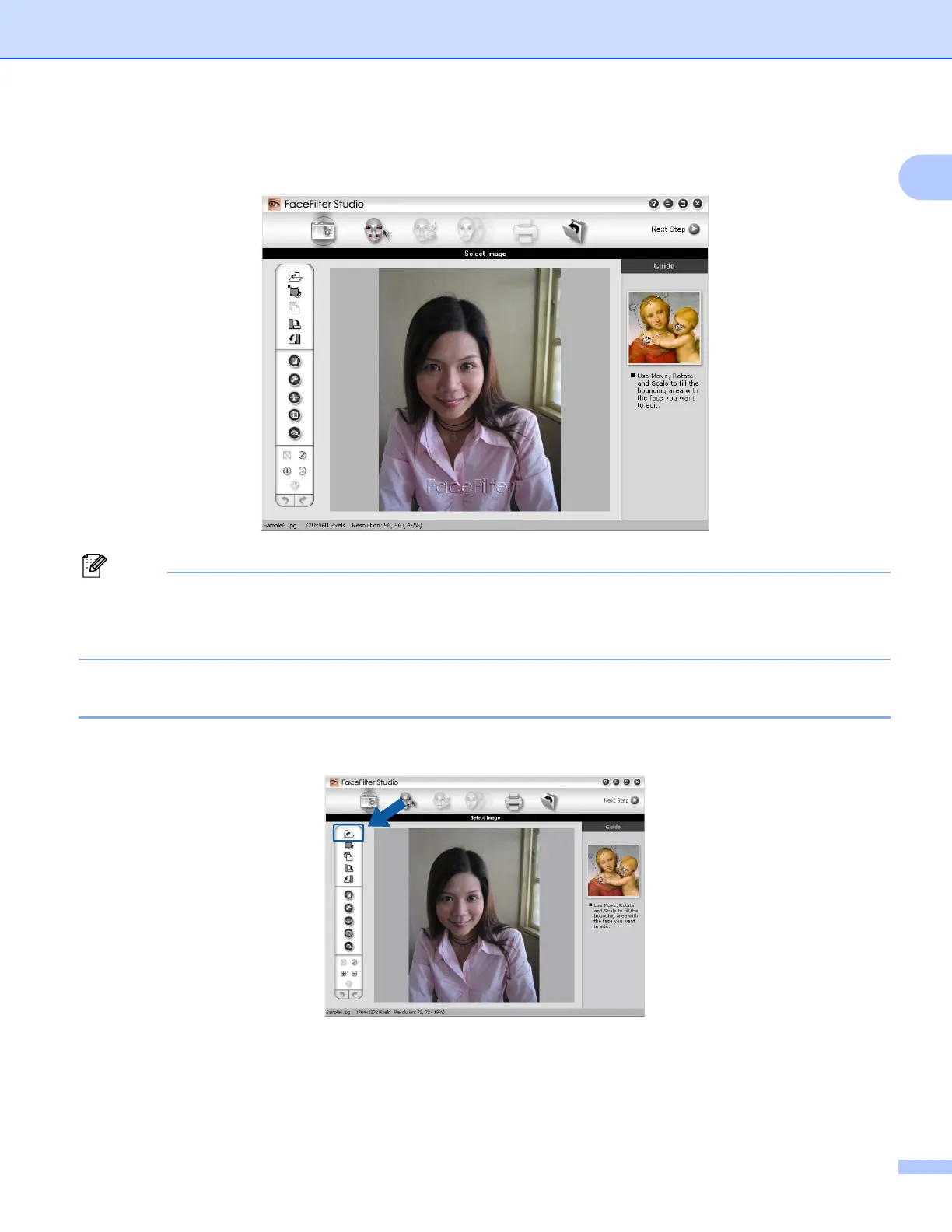 • To start FaceFilter Studio with full functionality, see Starting FaceFilter Studio with your Brother machine