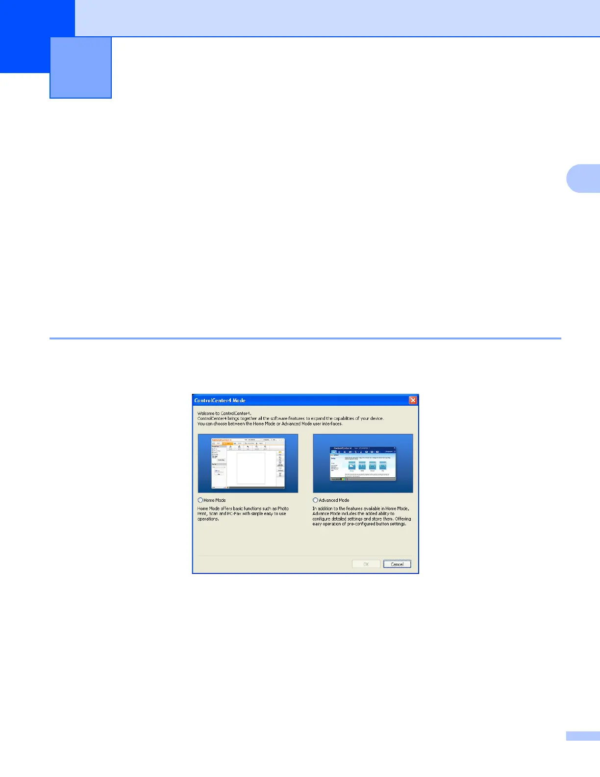 ControlCenter4 has two user interfaces: Home Mode and Advanced Mode.