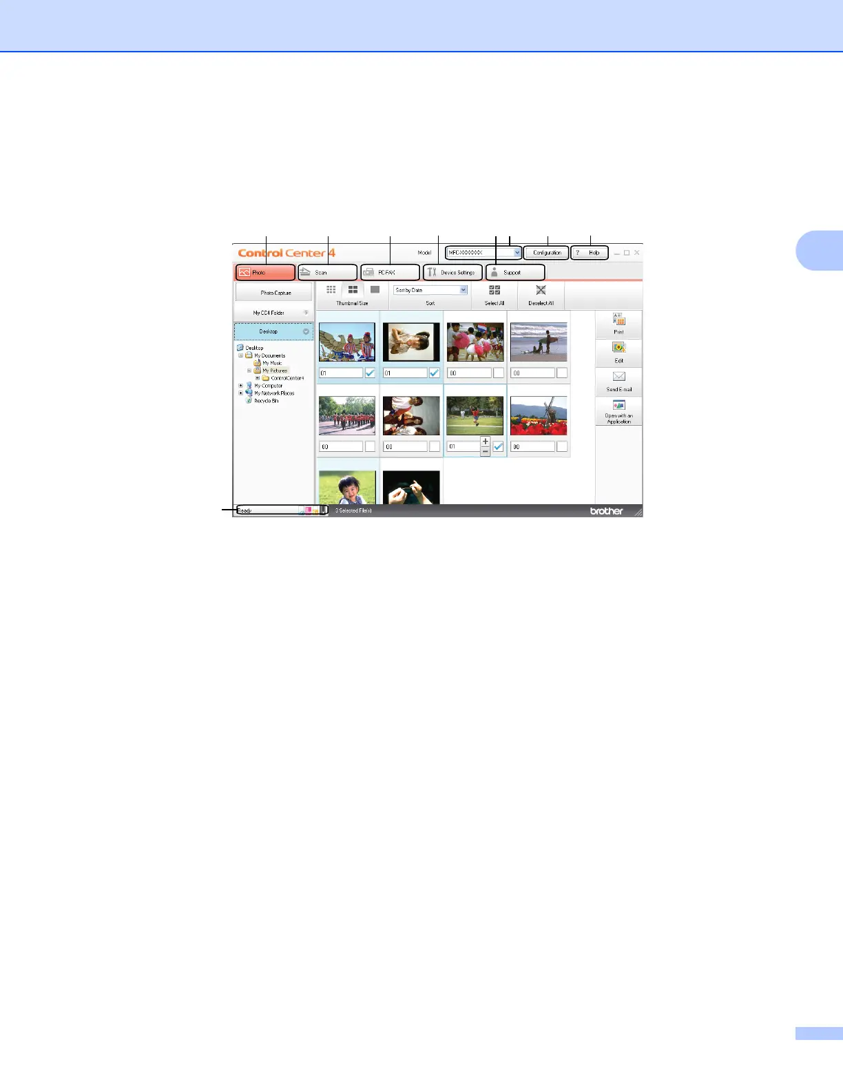 6 You can select which machine ControlCenter4 will connect with from the Model drop-down list.
