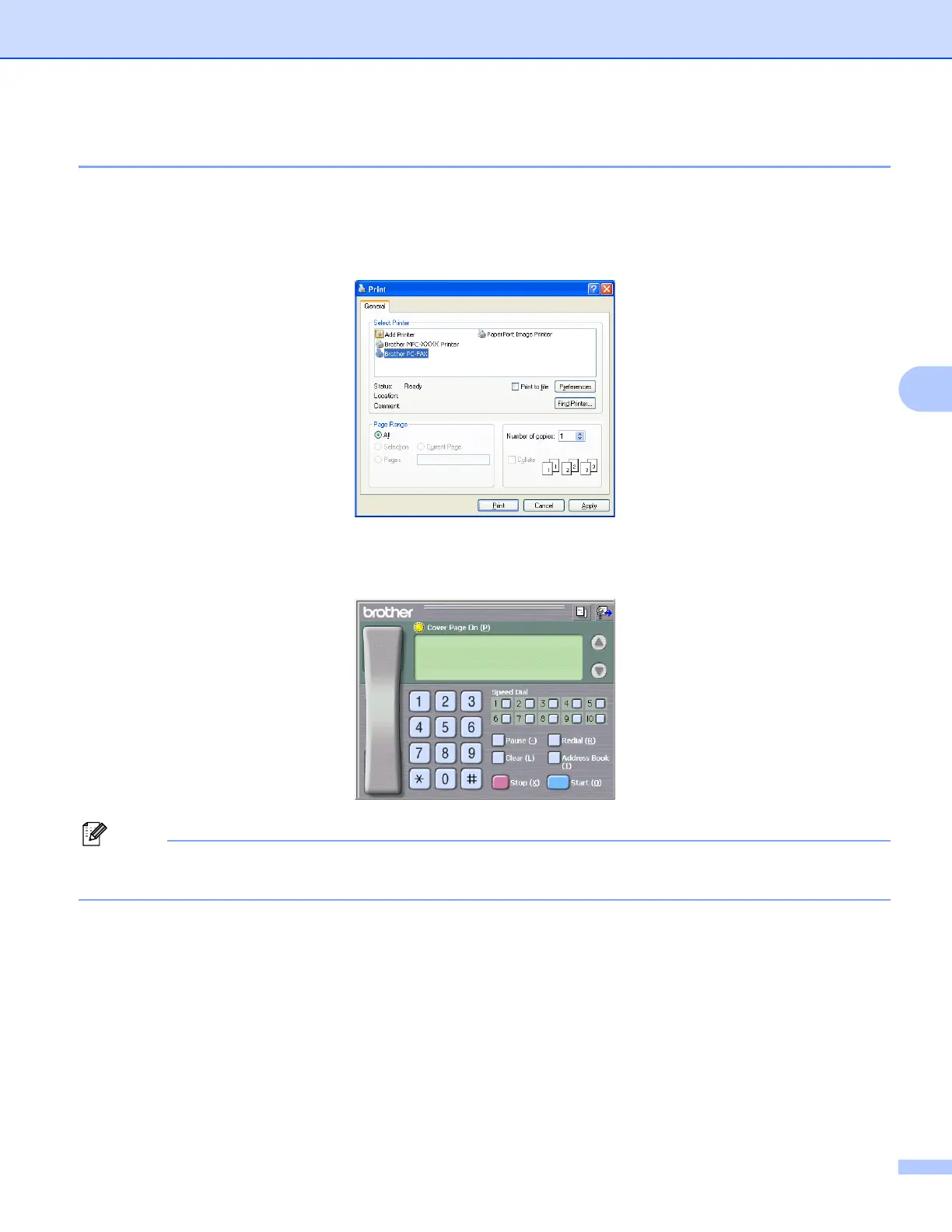 c Choose Brother PC-FAX as your printer, and then click Print.
