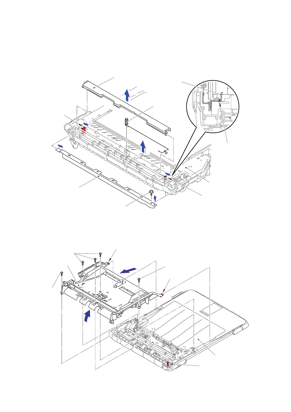 (10)Remove the five screws (TAPTITE CUP B M3x10) from the Upper document chute.