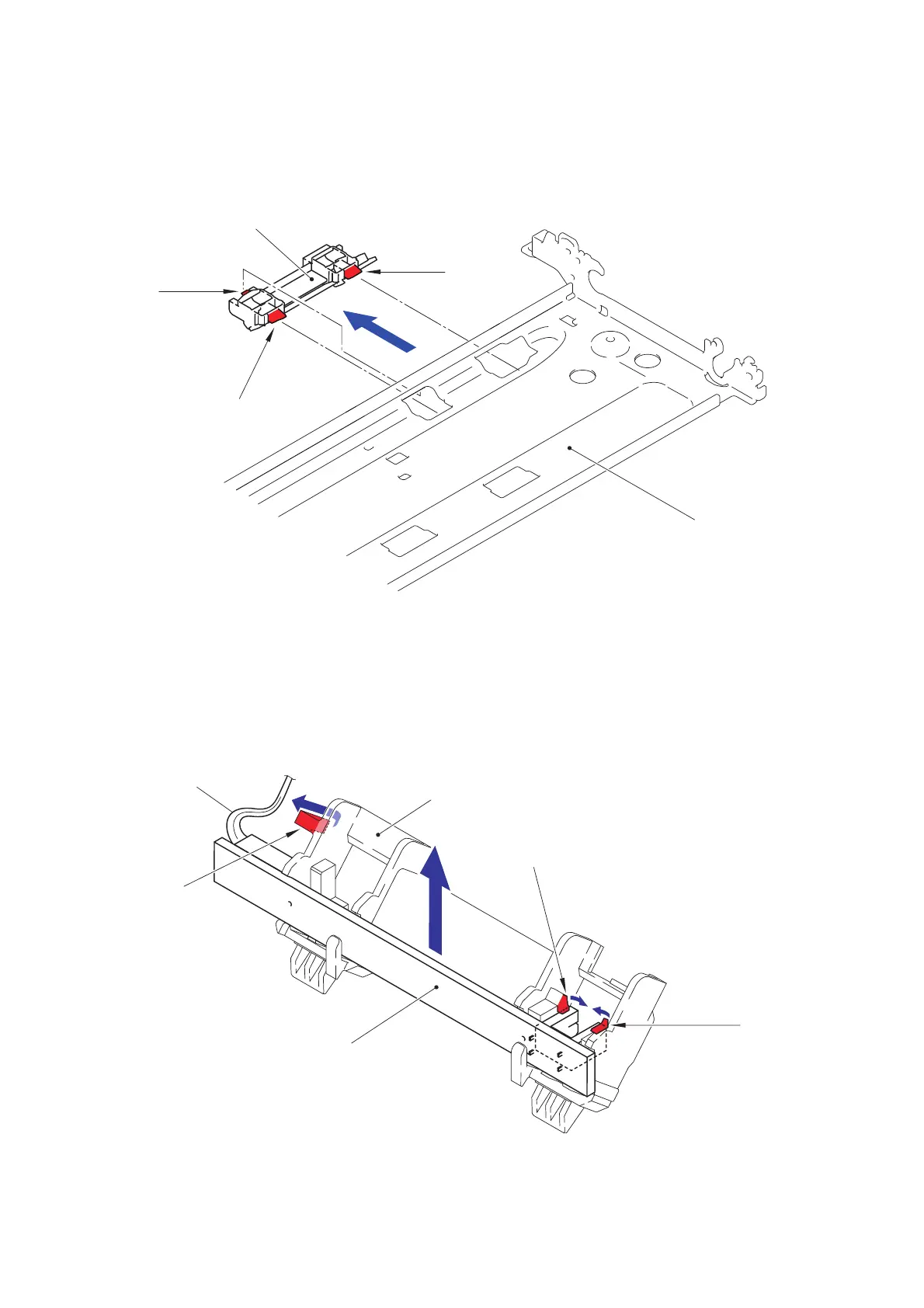 (3) Release the two Hooks and remove the Registration sensor PCB ASSY from the