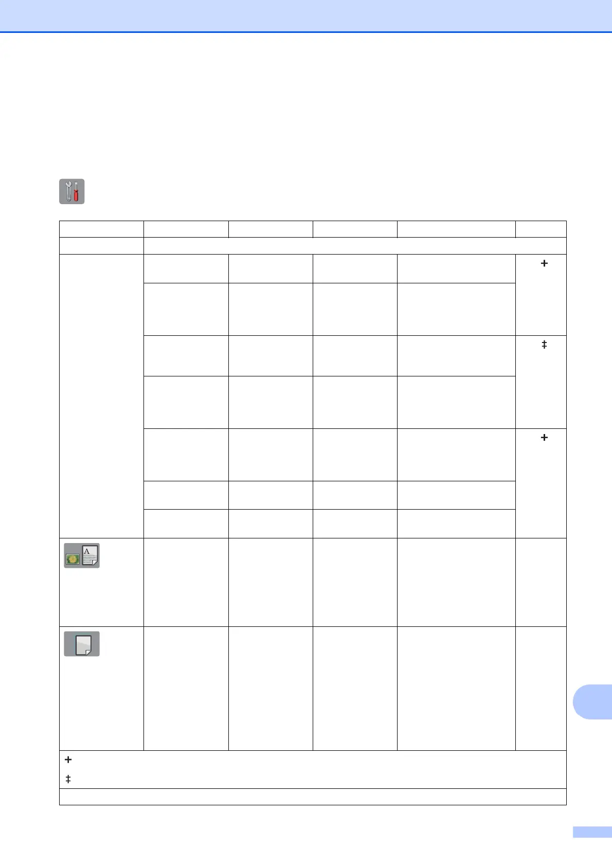 Settings and feature tables