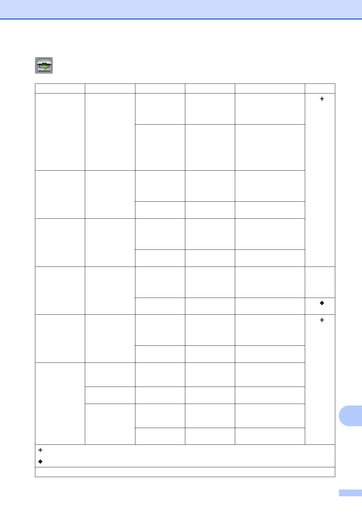 Settings and feature tables