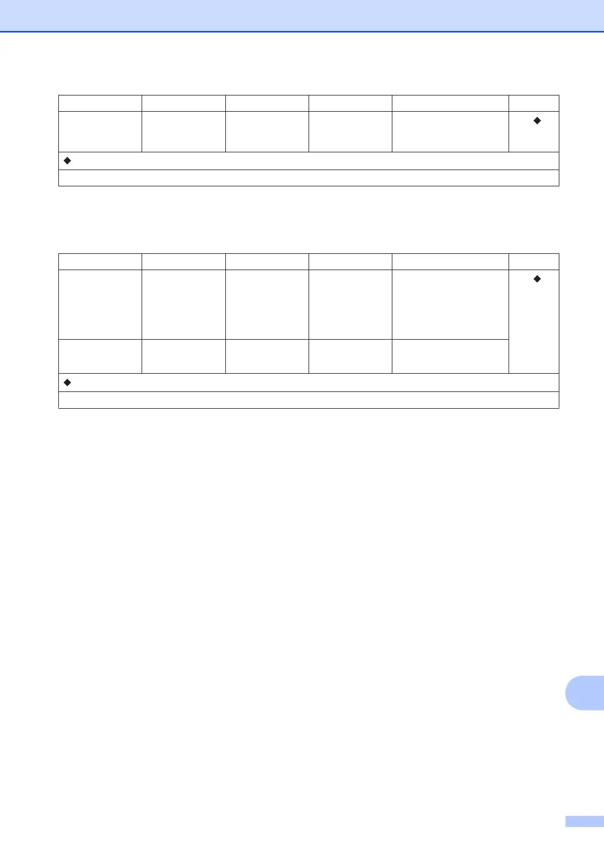 Settings and feature tables