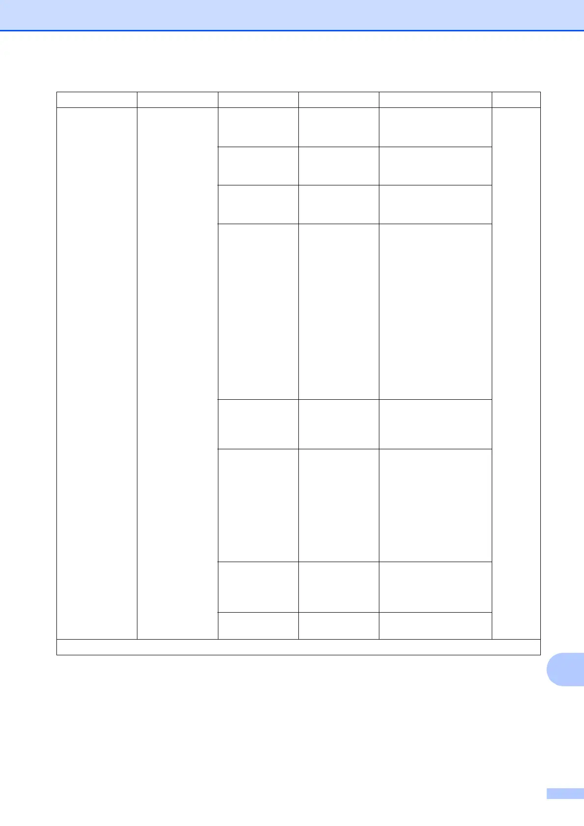 Settings and features tables