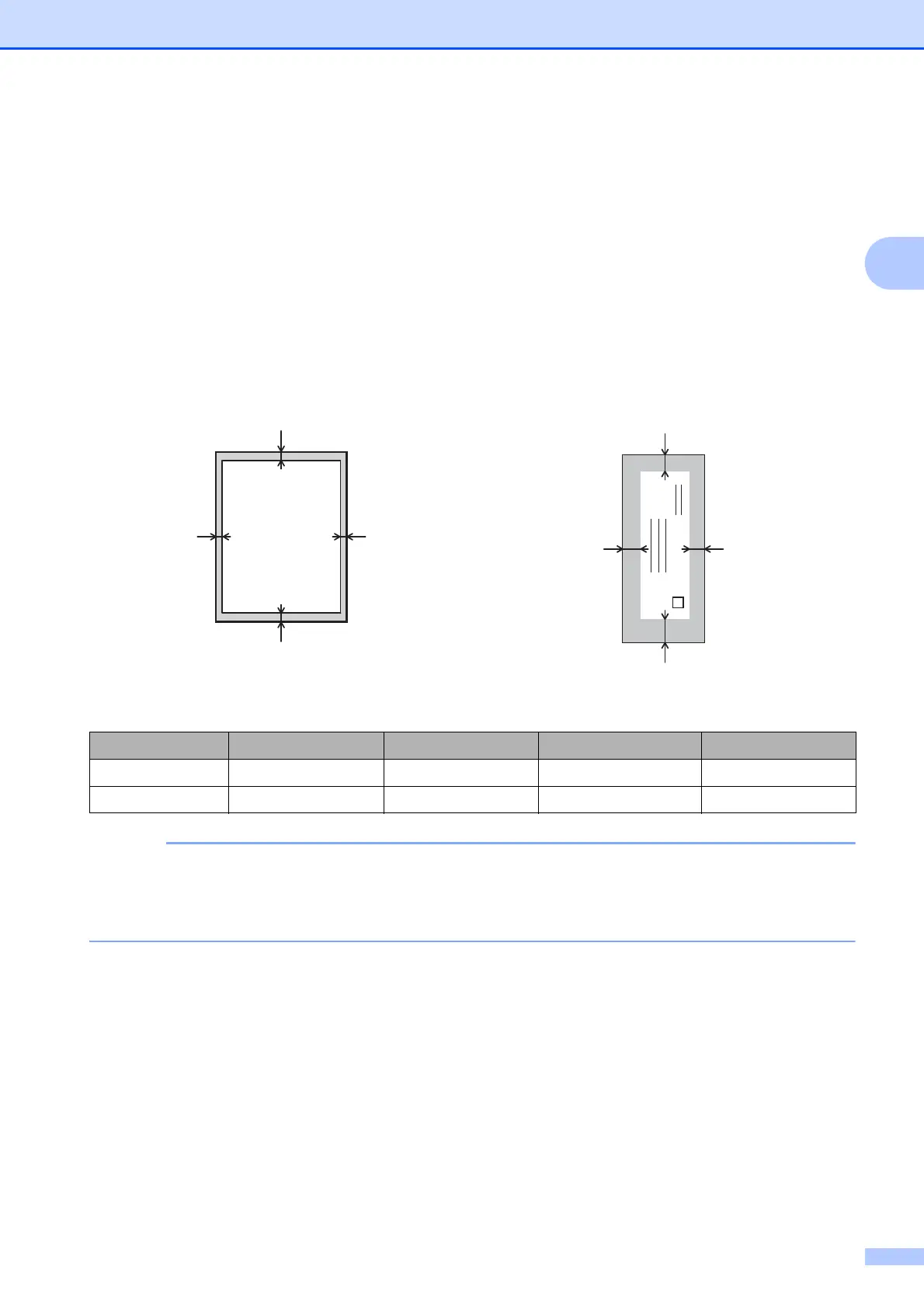 unprintable areas on cut-sheet paper and envelopes. The machine can print in the shaded areas