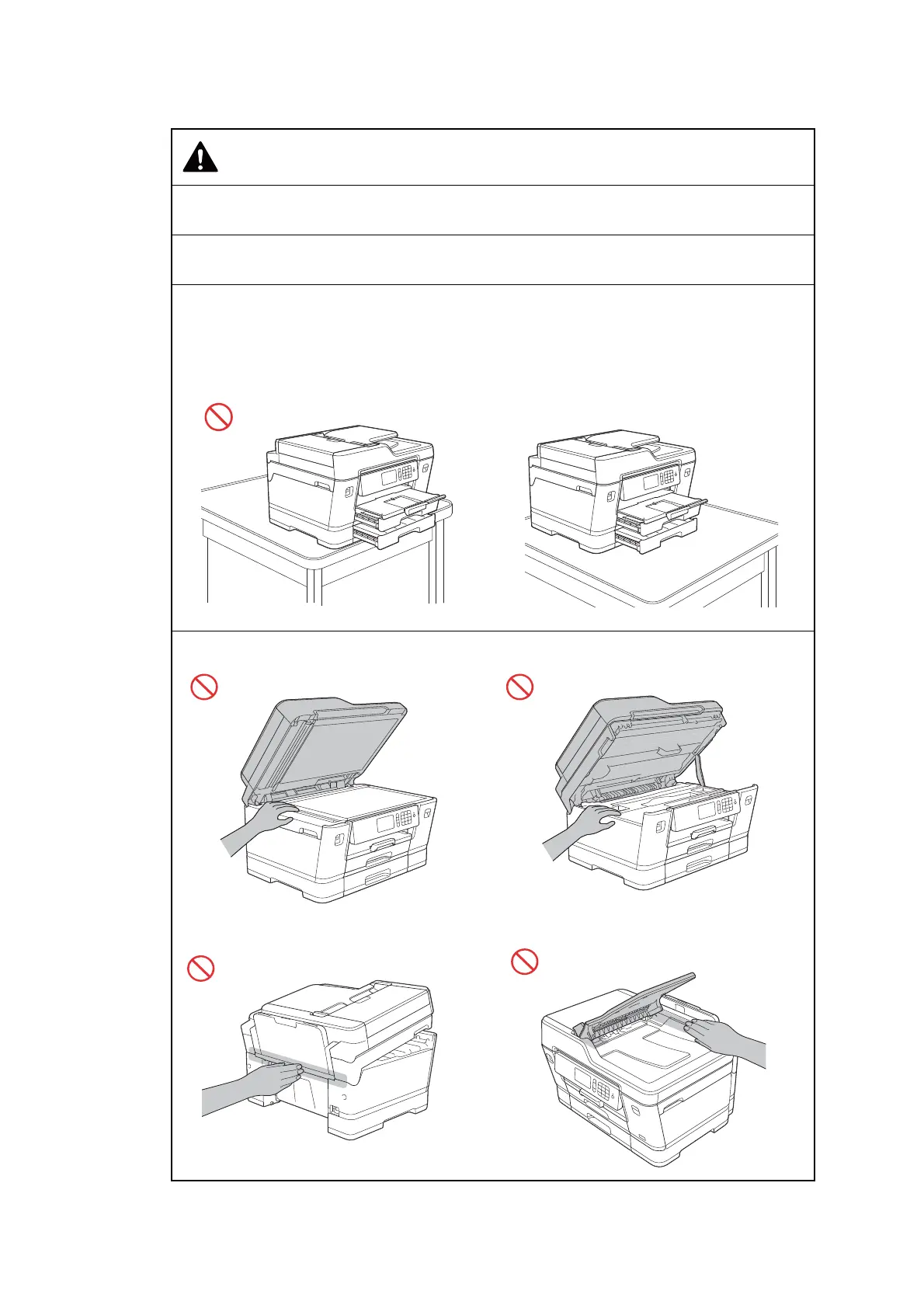 To prevent injuries, be careful not to put your fingers in the areas shown in the illustrations.