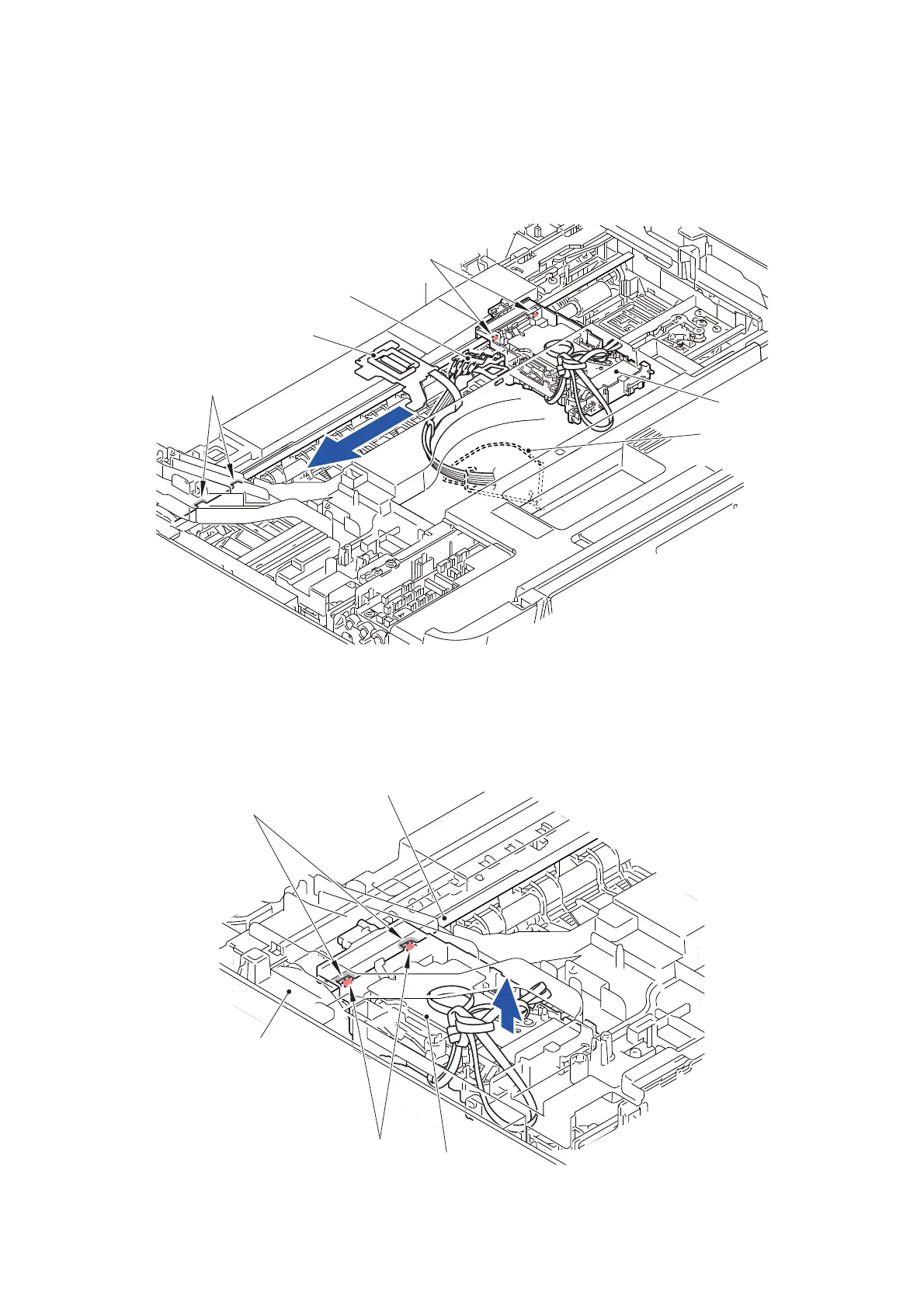 (21)Slide the Head/carriage unit in the arrow direction (until the two hooks of the Head/