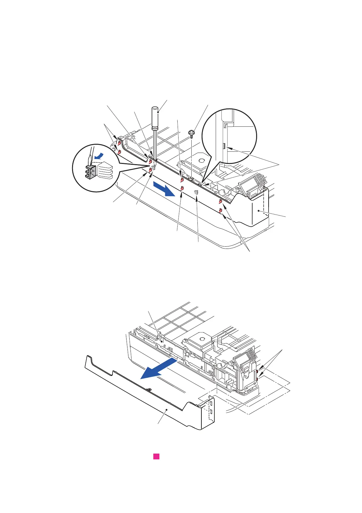 (19)Release the two Hooks and remove the Document scanner side cover L from the
