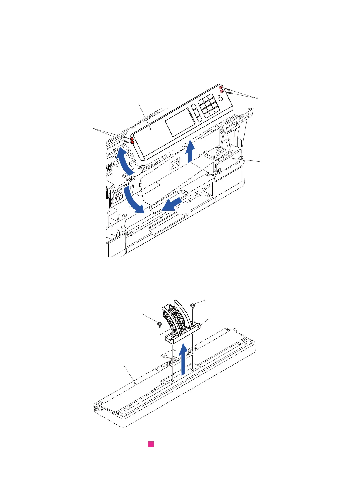 (8) Release the two Pins on the right-side of the Control panel ASSY from the Lower