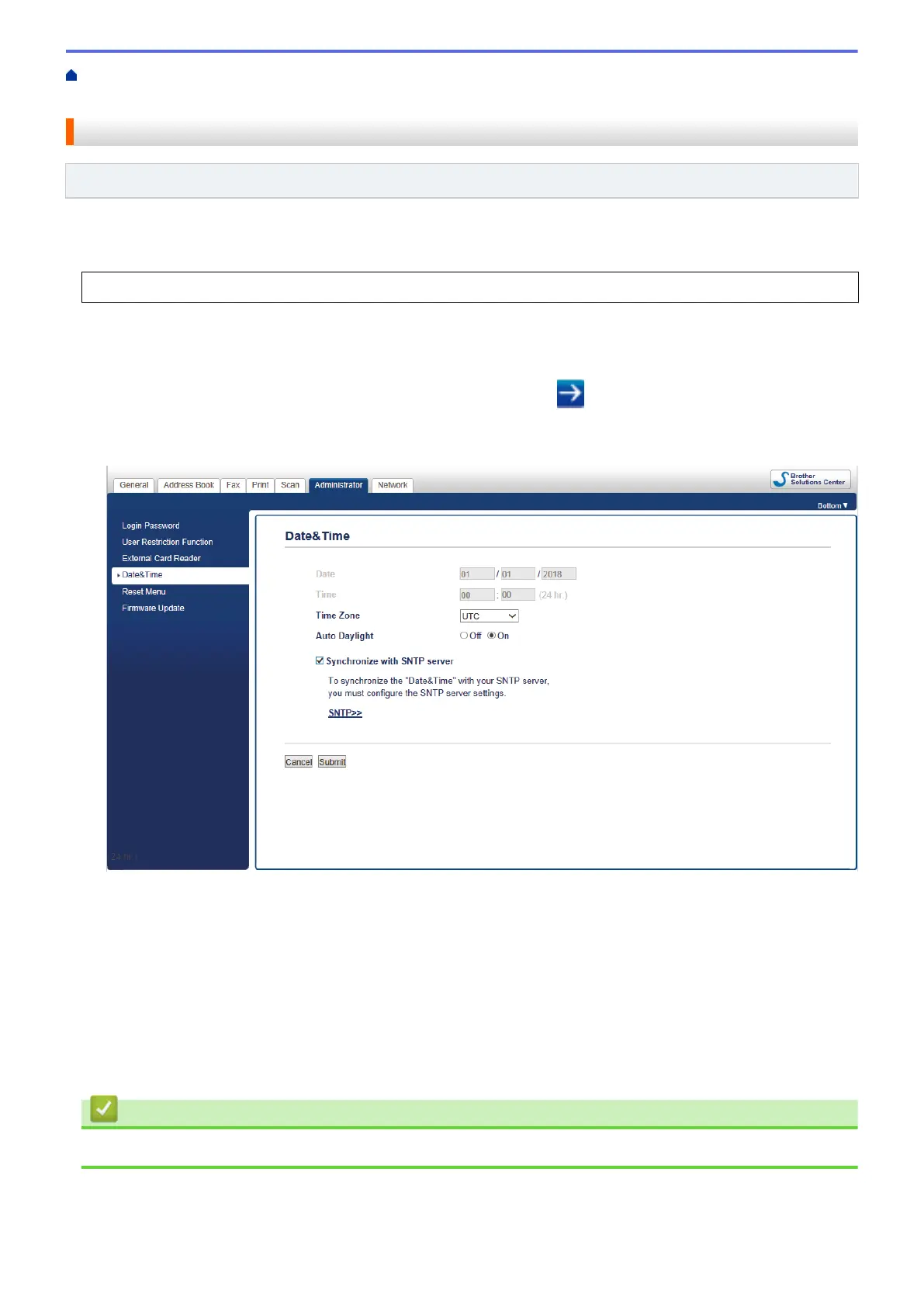 up a Scan to Network Profile > Set the Date and Time Using Web Based Management
