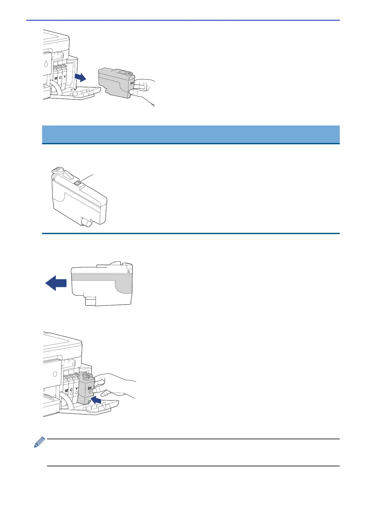 5. Gently push the area marked “PUSH” until the ink cartridge locks into place, and then close the ink cartridge