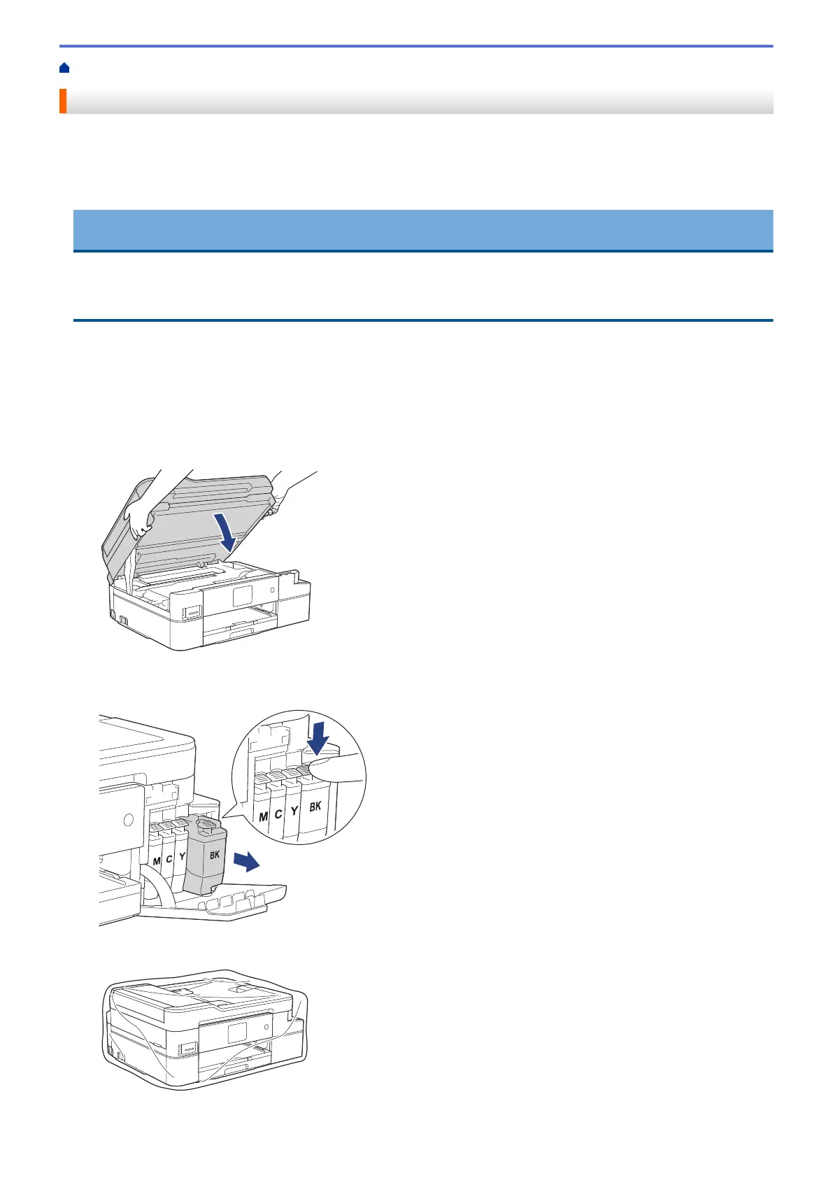 7. Press the ink release levers to release the ink cartridges and then take out the ink cartridges.