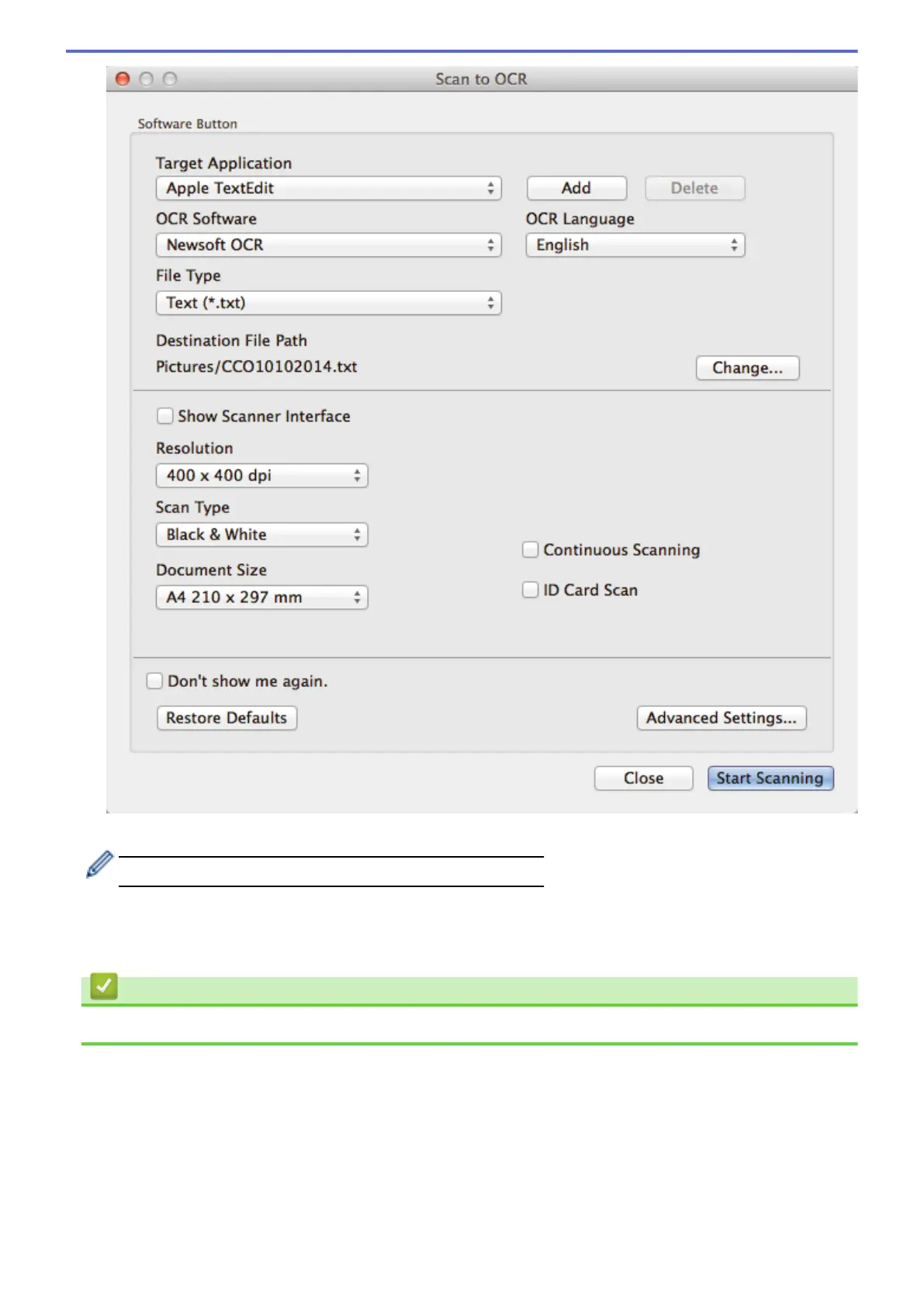 5. Change the scan settings, such as file format, file name, destination file path, resolution, or colour, if needed.