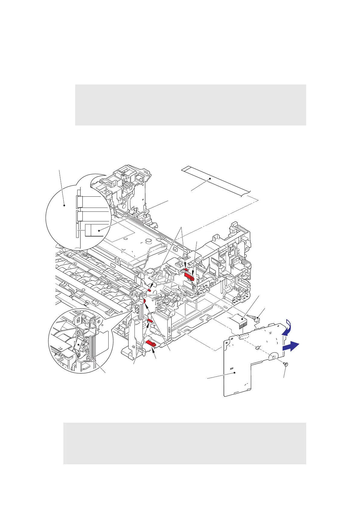 (1) Disconnect the HVPS flat cable and the registration front/rear sensor PCB harness from