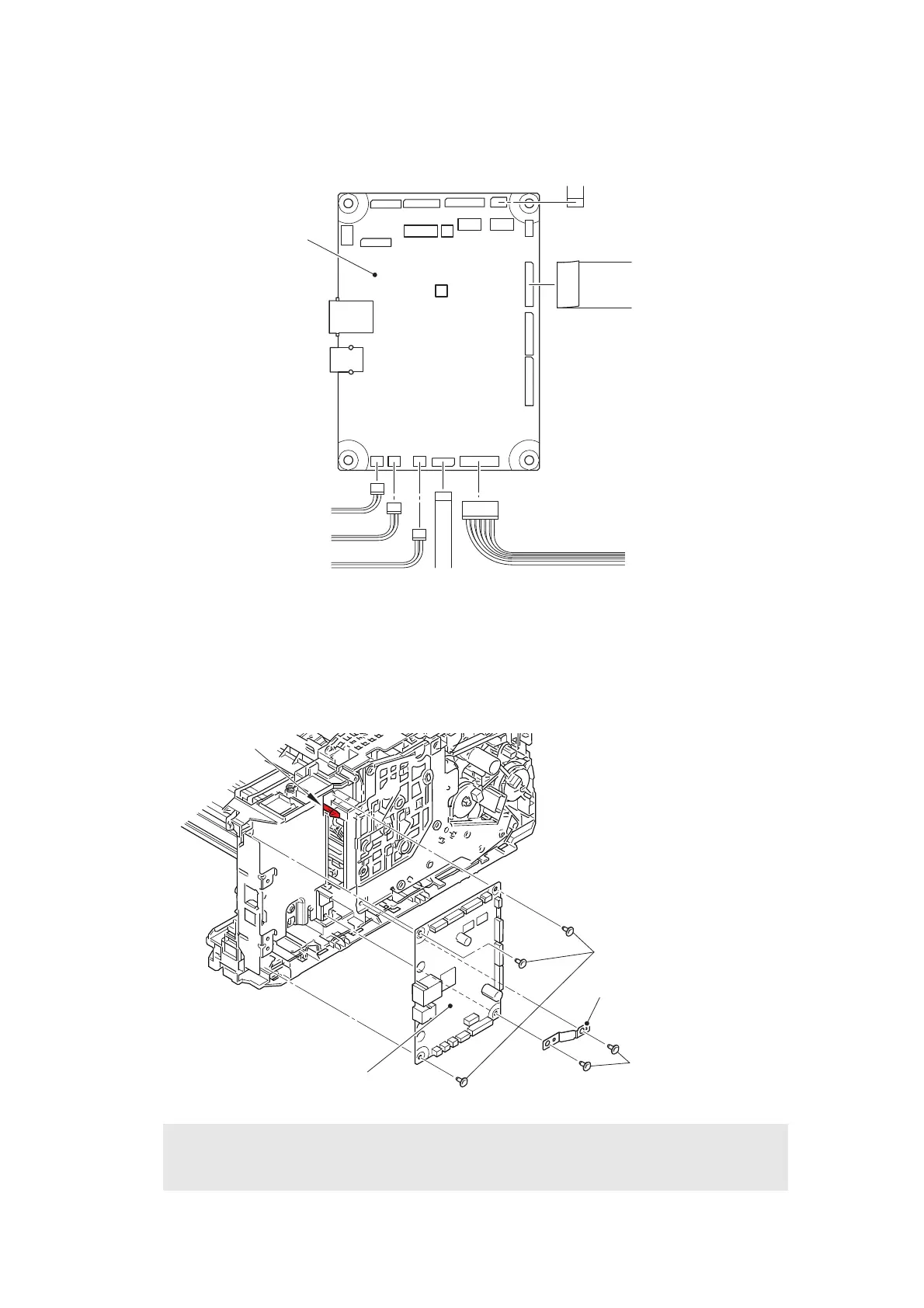 (2) Remove the two taptite cup S M3x8 SR screws, and remove the main PCB FG plate 1.