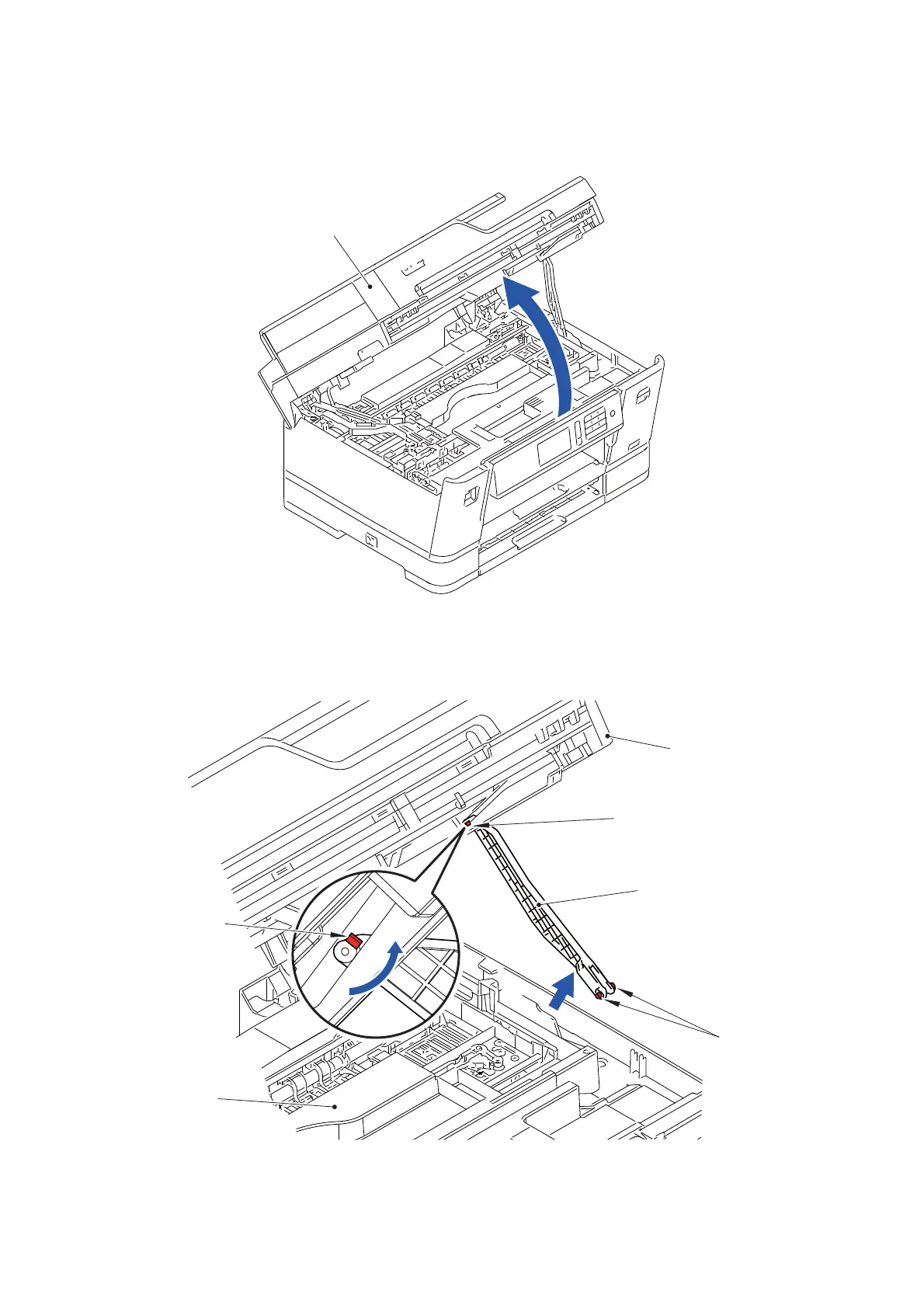 (2) Release the two Hooks of the FB stopper from the Upper cover.