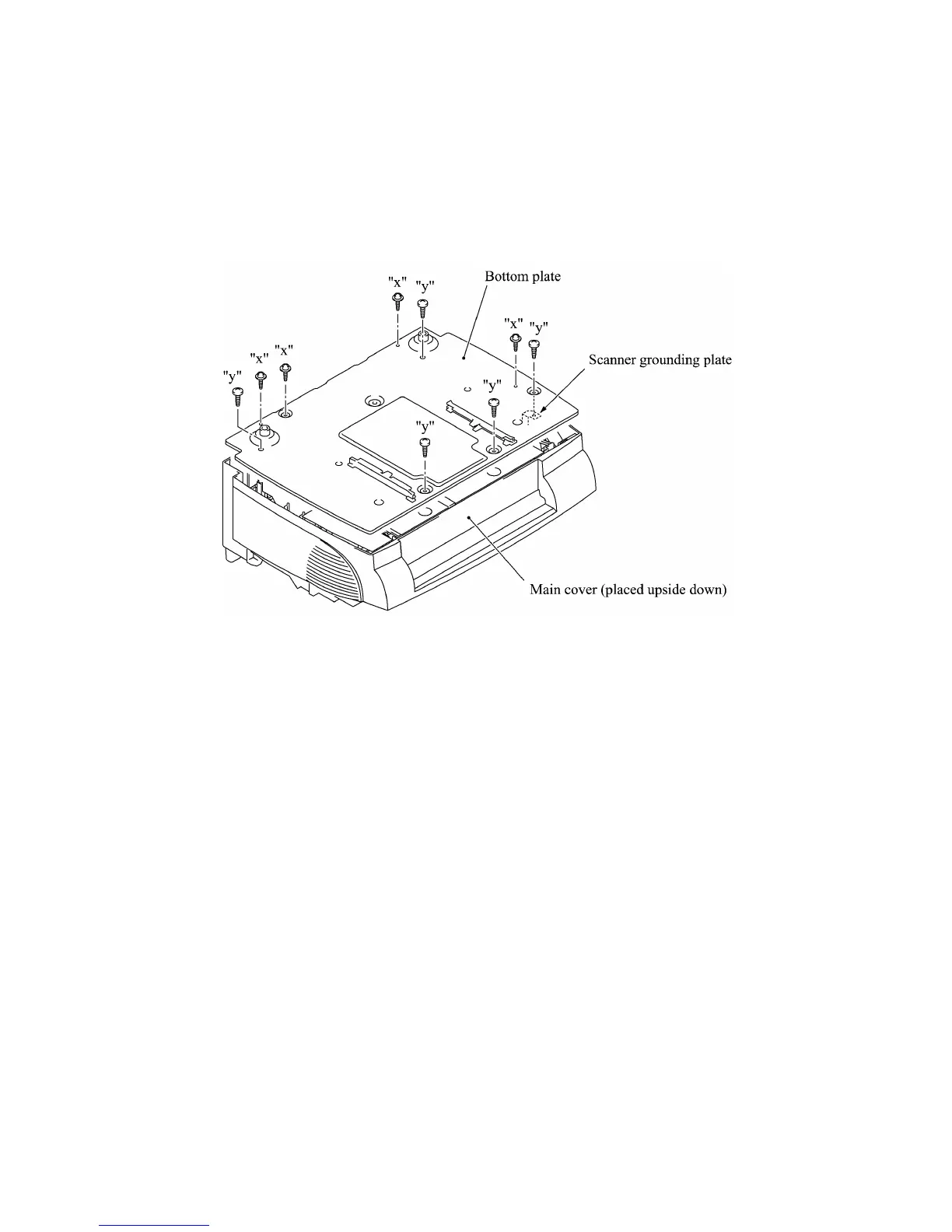 (2) Remove the nine screws (four "x" and five "y") from the bottom plate, then lift it up.