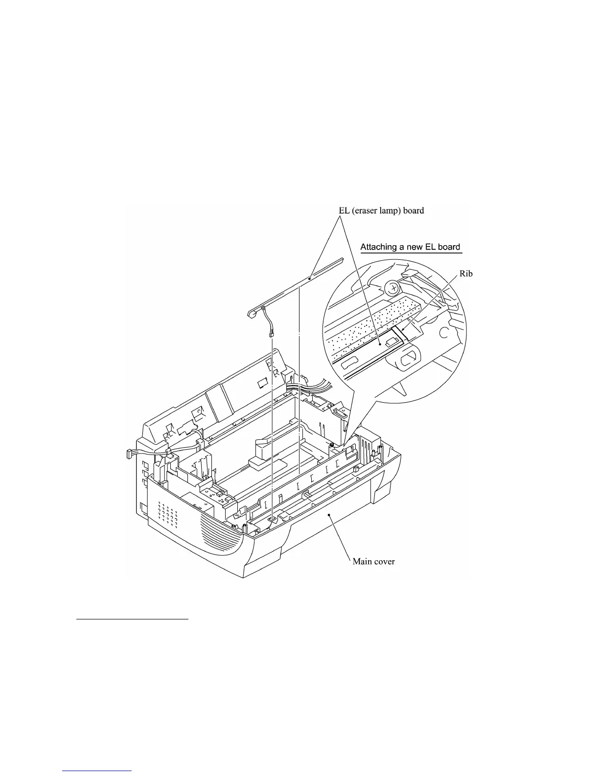 • When attaching a new EL board, bring the right end into contact with the rib provided on the