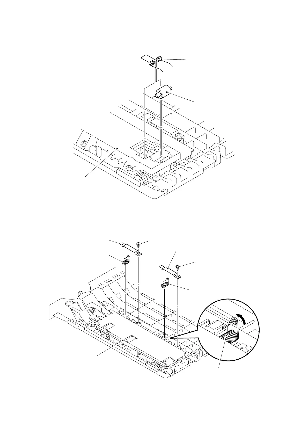 (4) Remove the two bind B M3x8 Taptite screws, and then remove the guide plate stopper.