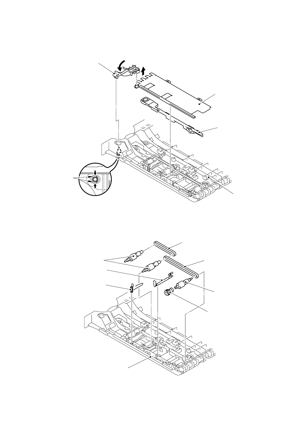 (7) Remove the left guide plate ASSY and DX paper switch pull arm.
