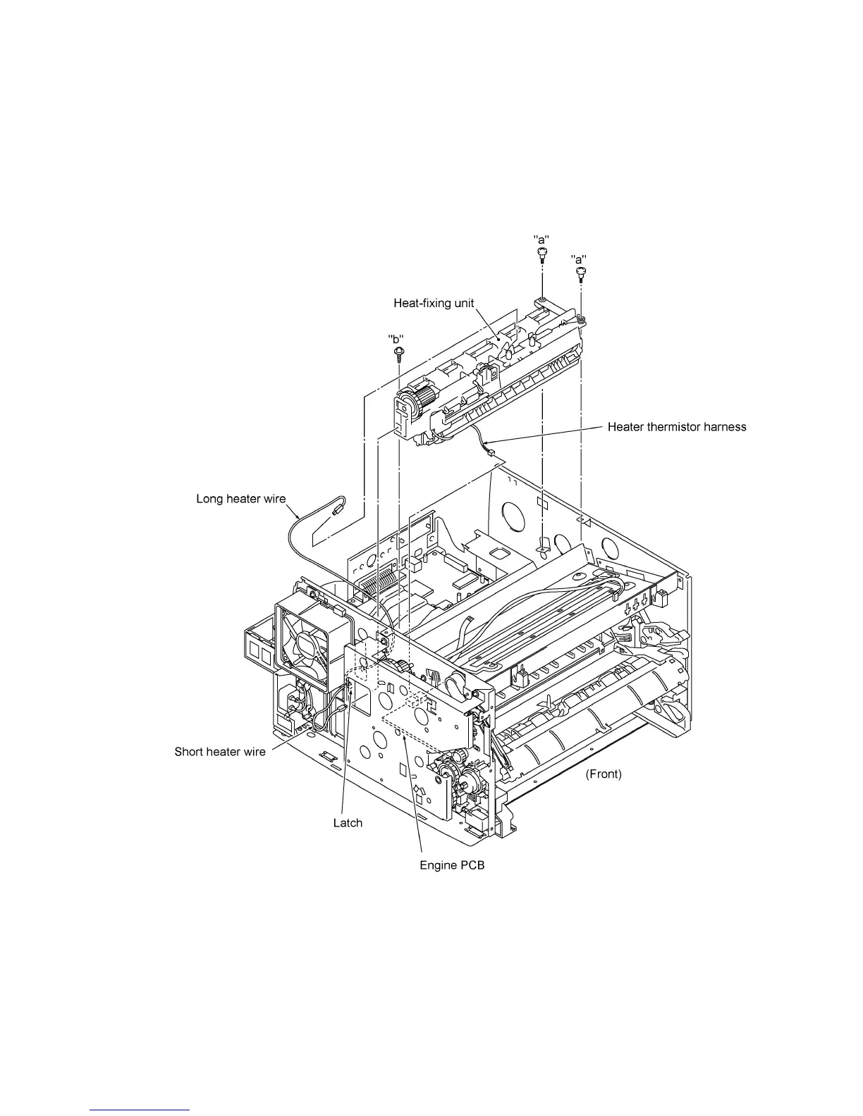 (7) Lift up the heat-fixing unit and disconnect the heater thermistor harness from the engine PCB.