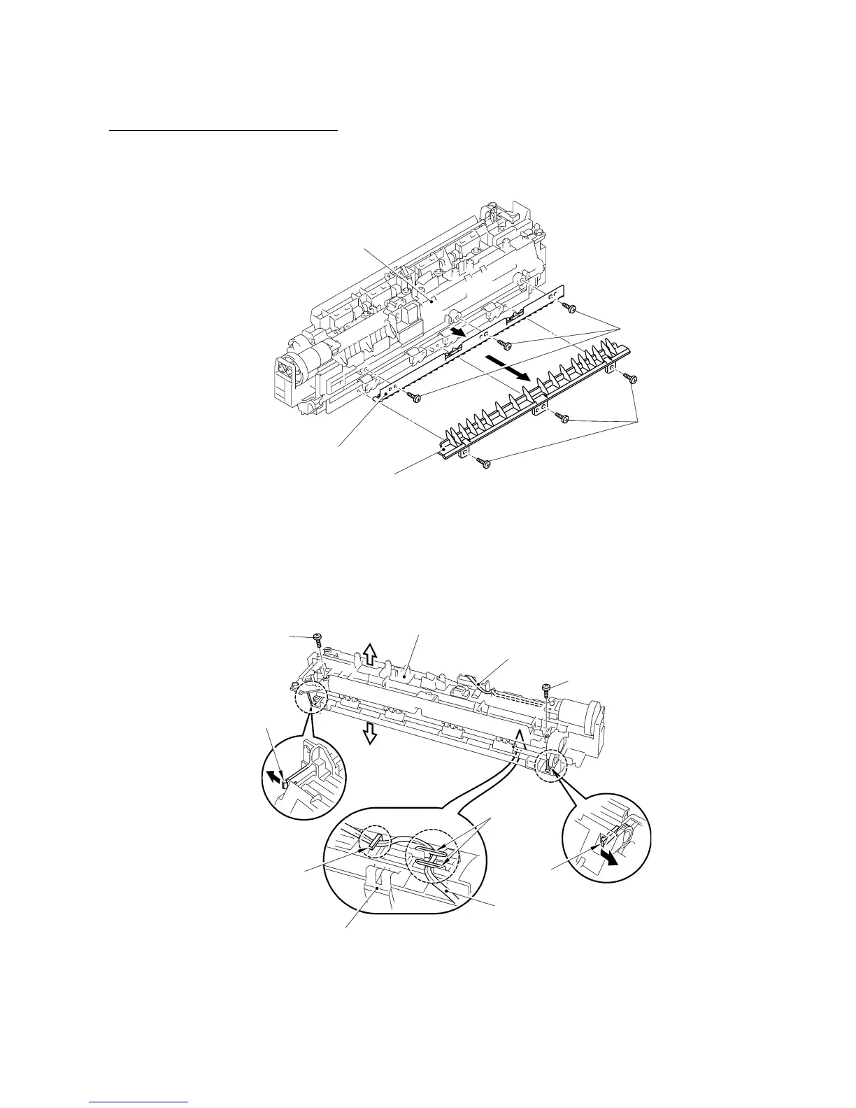 (1) Remove the three screws and take off the FU front paper guide.