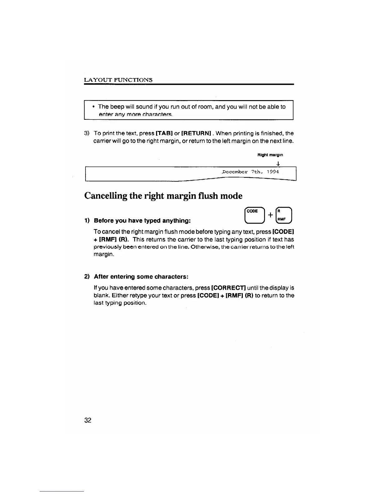 Brother ML-500 - Electronic Word Processing Typewriter - Cancelling the Right Margin Flush Mode