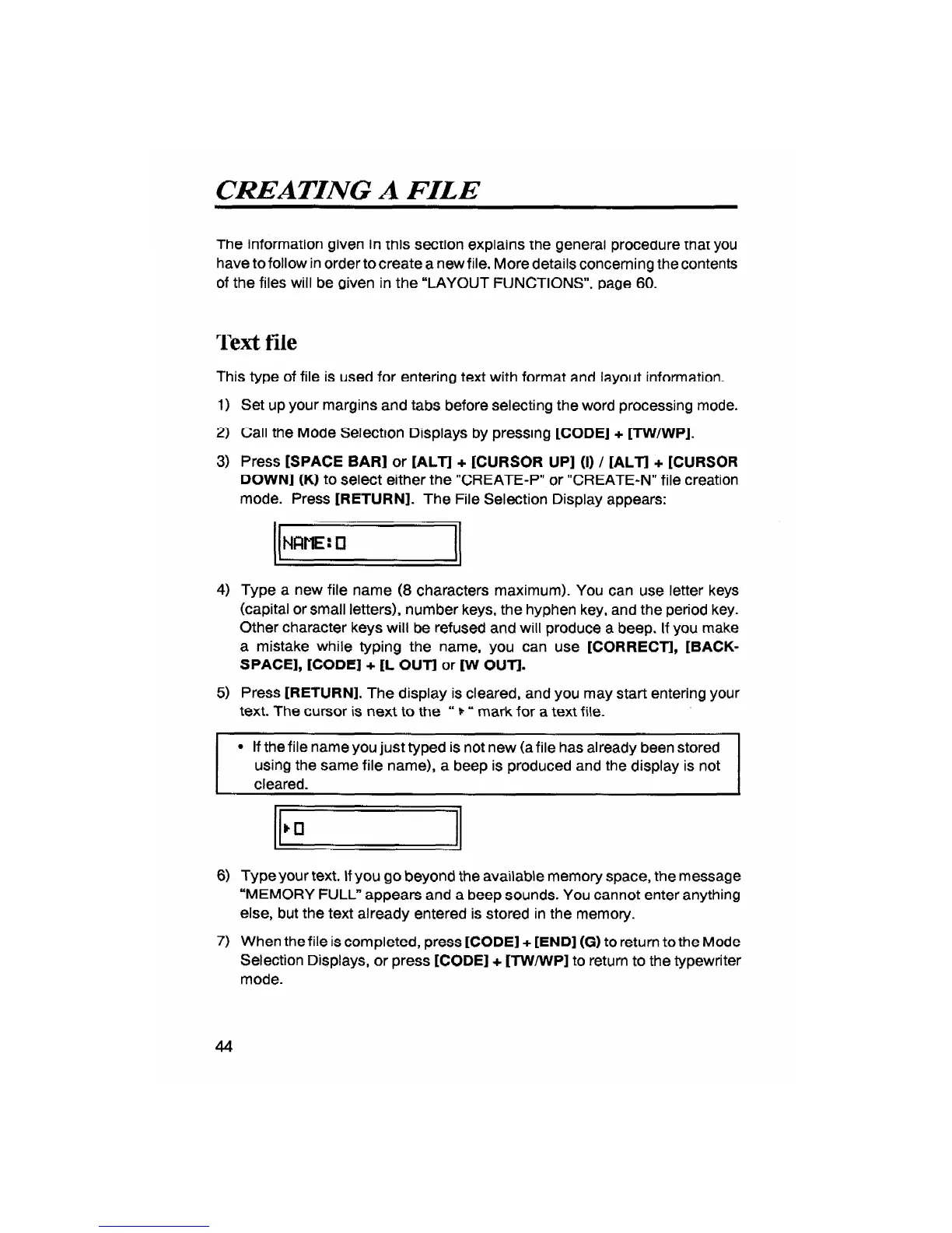 Brother ML-500 - Electronic Word Processing Typewriter - Creating a File; Text File