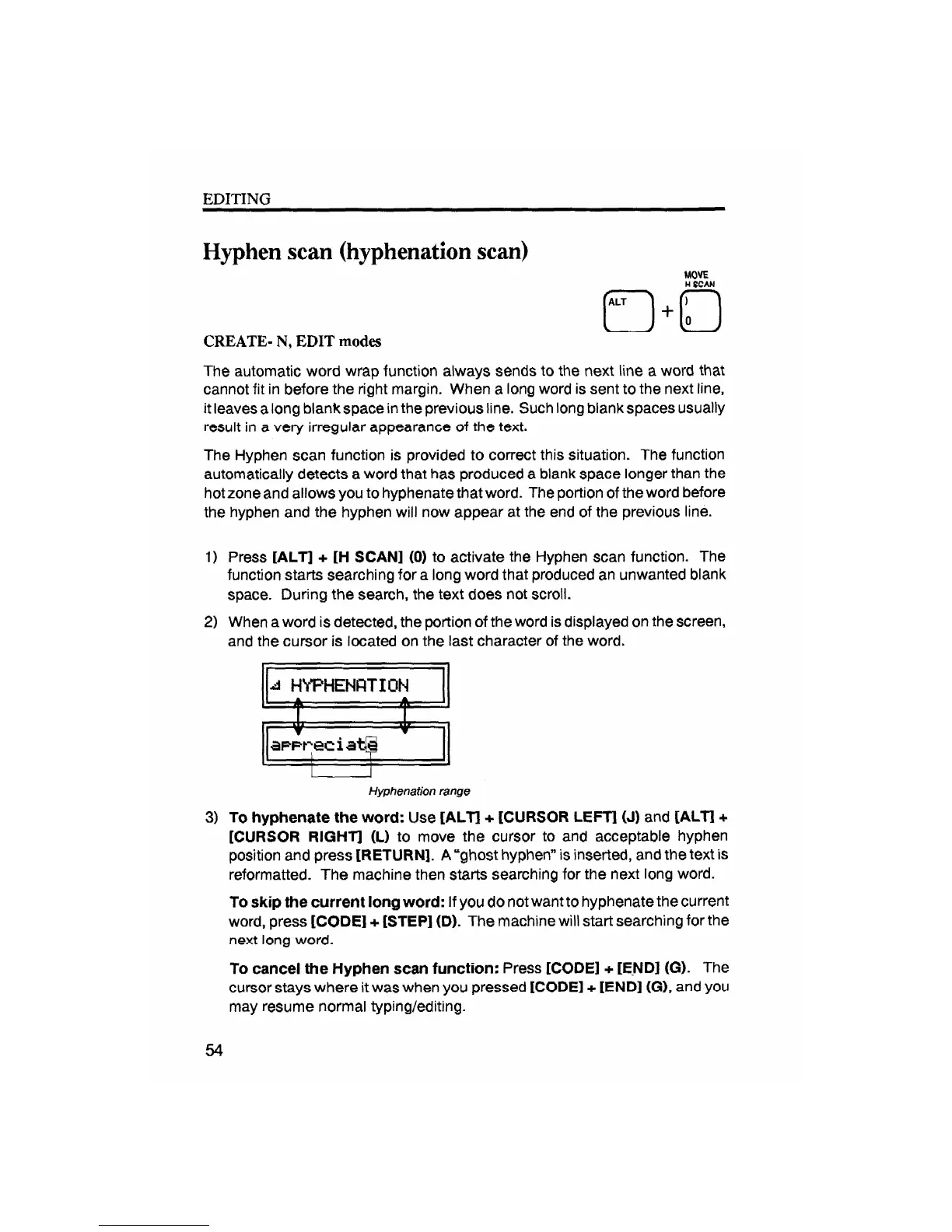 Brother ML-500 - Electronic Word Processing Typewriter - Hyphen Scan (Hyphenation Scan)
