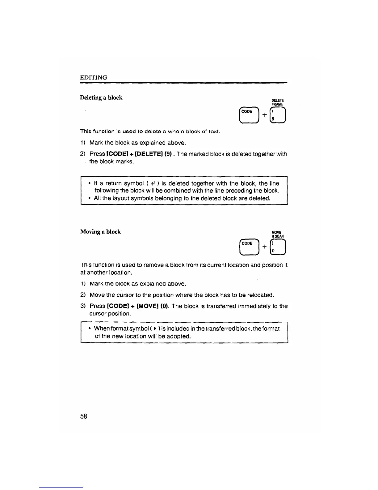 Brother ML-500 - Electronic Word Processing Typewriter - Deleting a Block; Moving a Block