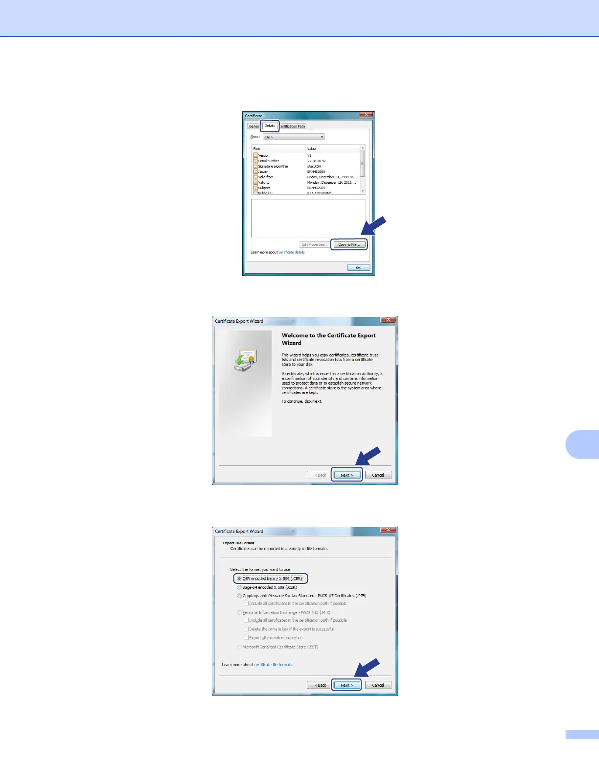h Make sure that DER encoded binary X.509 (.CER) is chosen, and then click Next.