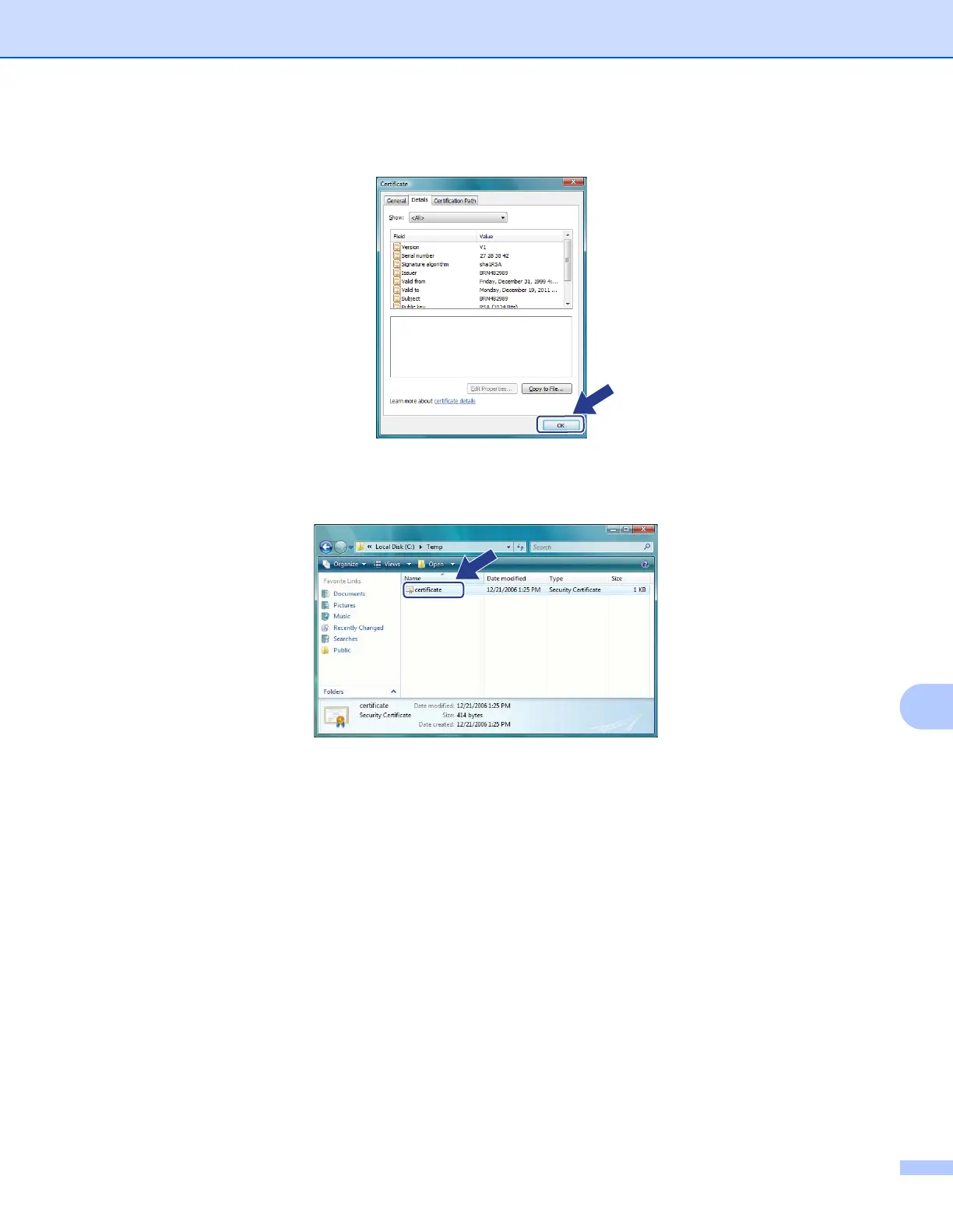 p Open the folder that you saved the certificate file in k and double-click the certificate file. For the rest of
