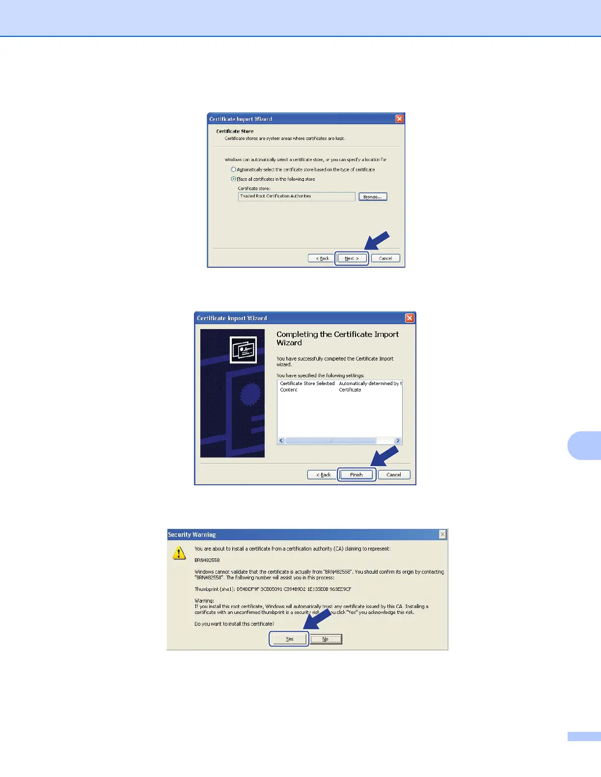 j Click Yes, if the fingerprint (thumbprint) is correct.