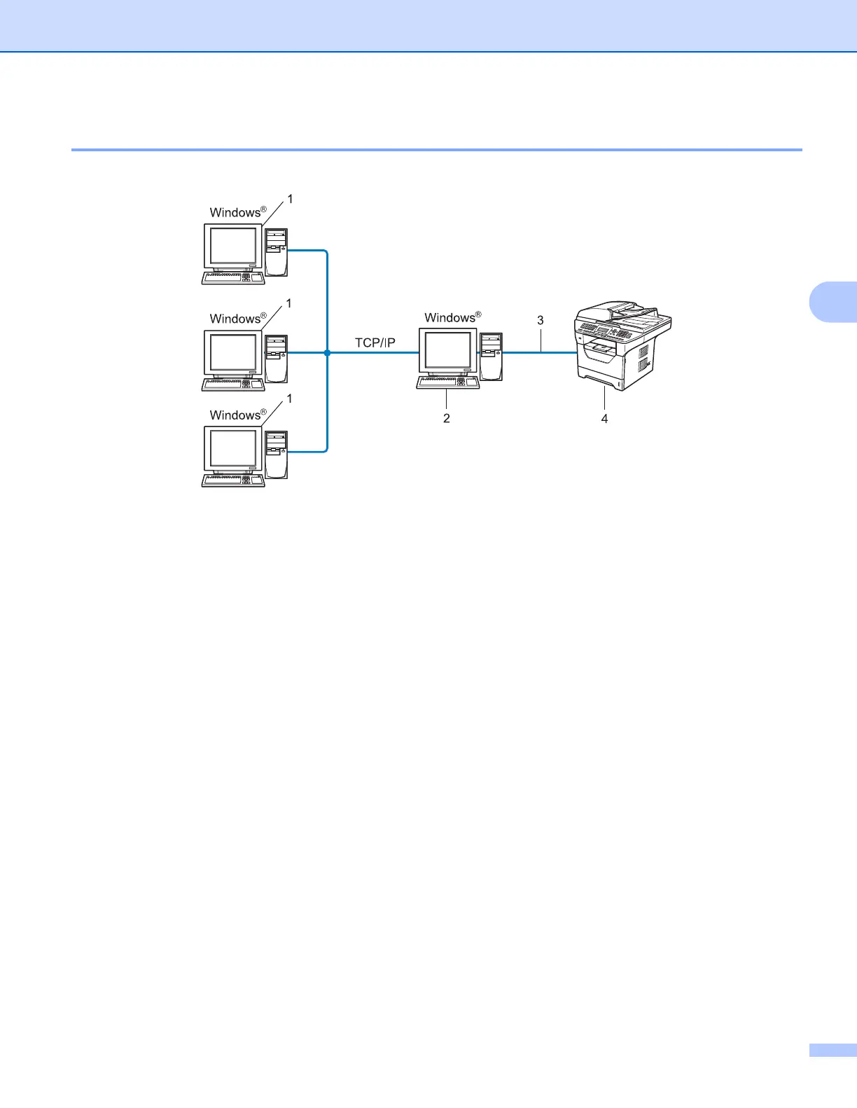 The device is connected to a network and a central print queue is used to manage all print jobs.